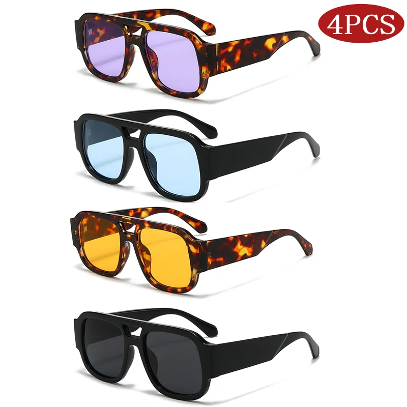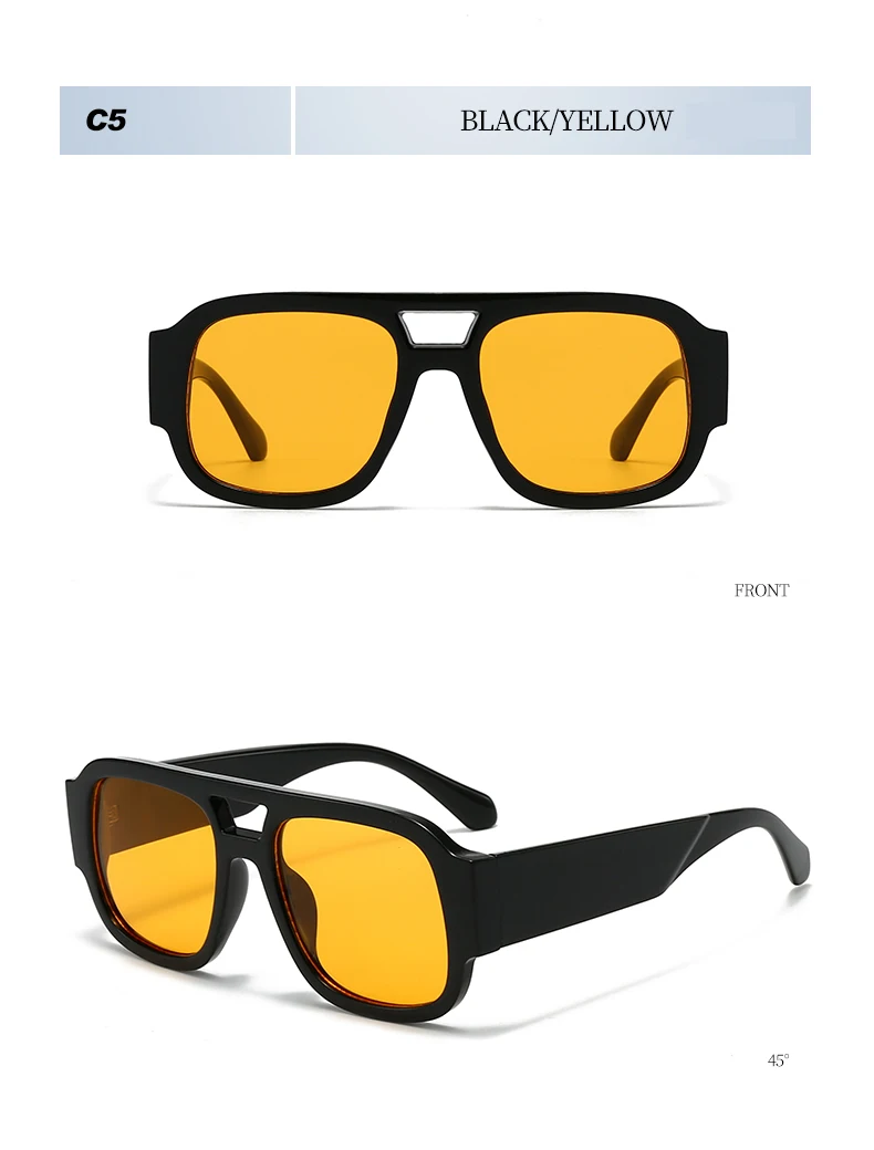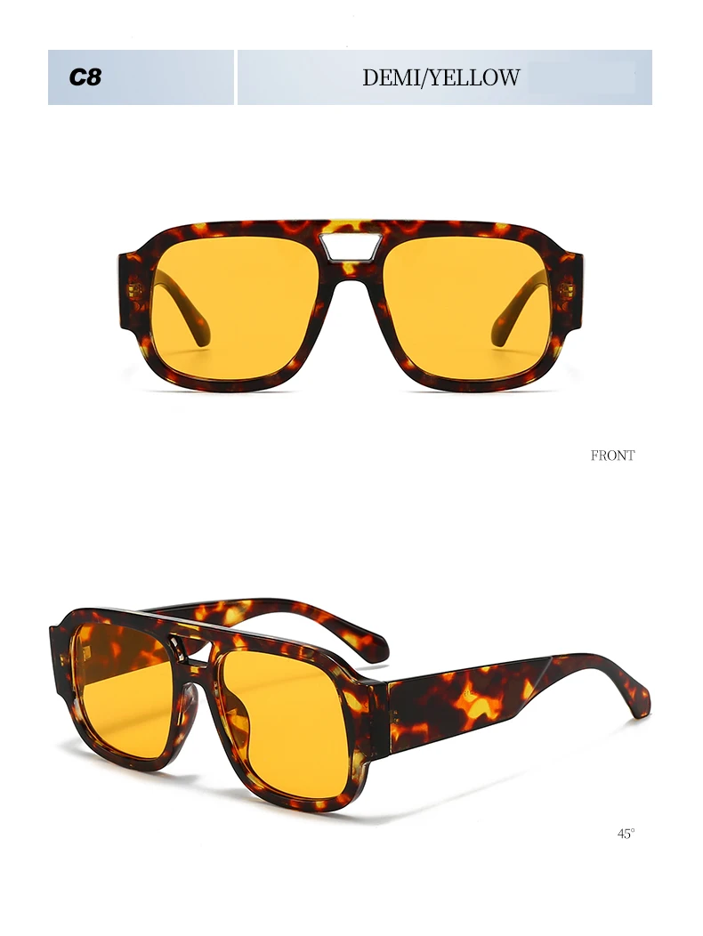 Retro Large Frame Double Bridges Square Sun Glasses